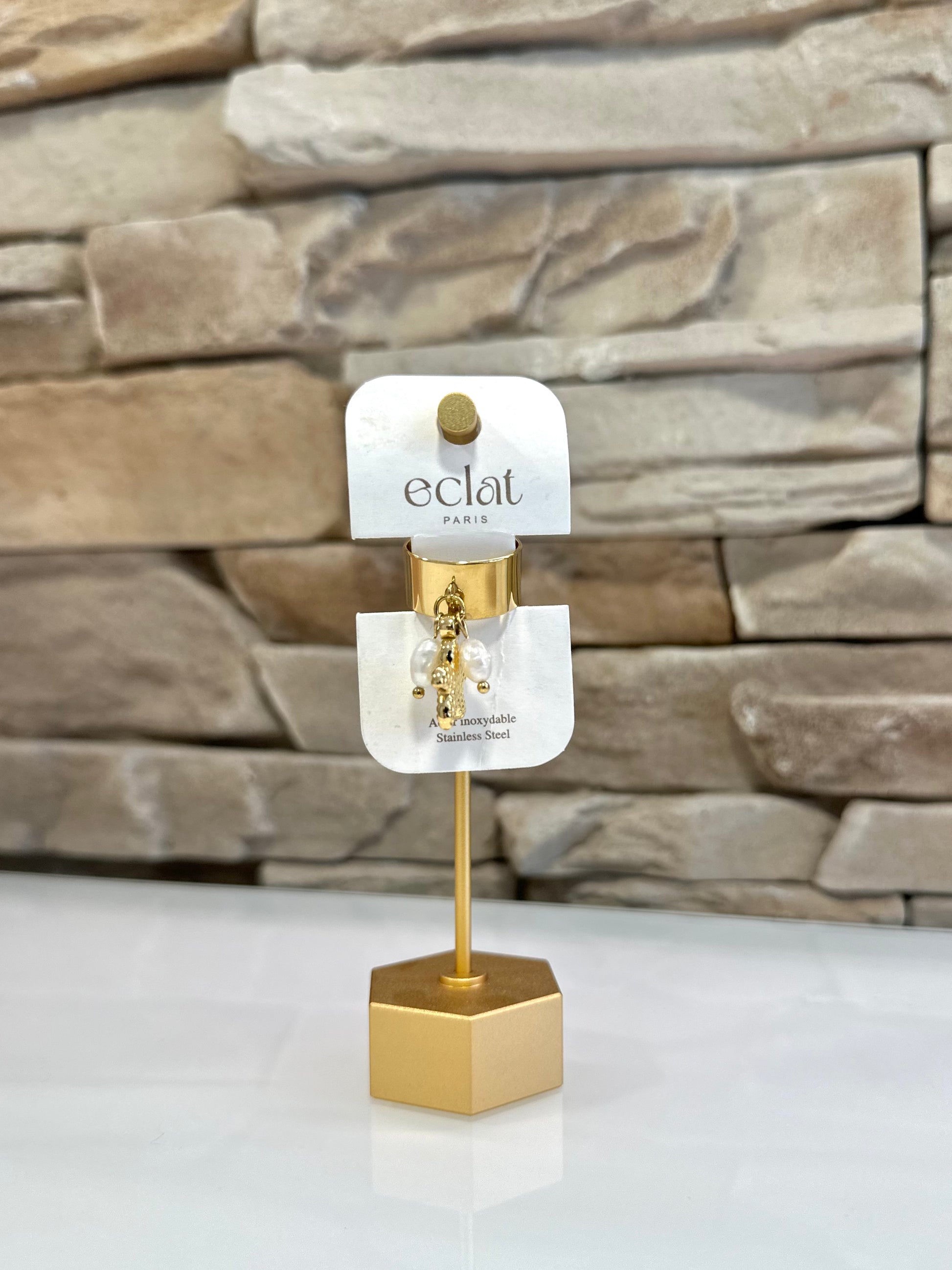 Bague dorée breloque en acier inoxydable